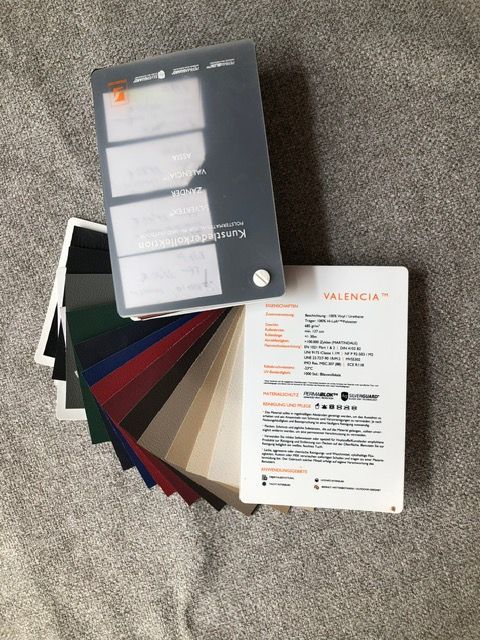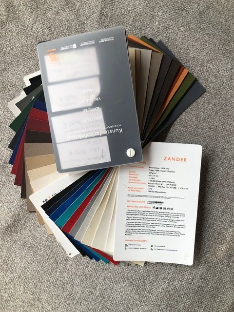 Wir bieten auch Kunstleder der Firma Hans Reinke an. So können selbst aus-gefallene Farbwünsche bedient werden.